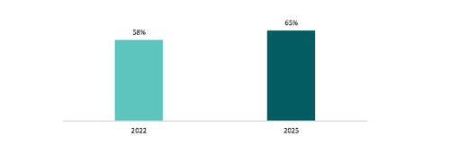 Figure 5: Percent of parents reporting the law is a reason for sending their child to school, 2022 and 2025.