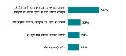 चित्र 4: पिछले 30 दिनों में विद्यार्थियों के नस्लवादी दादागिरी और नस्लवाद के अनुभव[1]