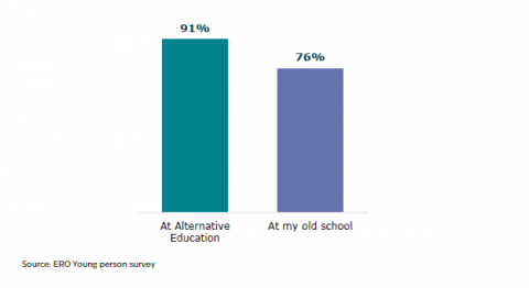 Figure 21:Â Young people who agree their work is the right level for them at Alternative Education compared to at their old school
