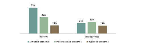 Figure 8: Percent of teachers and leaders using rewards and consequences by socio-economic level.