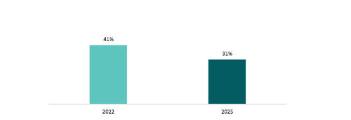 Figure 4: Percent of parents comfortable with their child missing a week or more of school in a single term, 2022 and 2025.