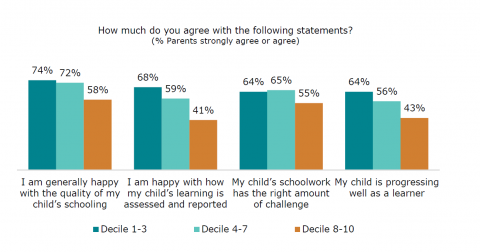 Disabled learners in schools serving lower socio-economic communities report better outcomes. Not all schools are welcoming of disabled learners, resulting in inequities for disabled learners. Disabled learners in low decile schools reported more positive outcomes on a range of measures than those at high decile schools. Their parents and whÄnau are also more satisfied with how the school is supporting their childâs learning.